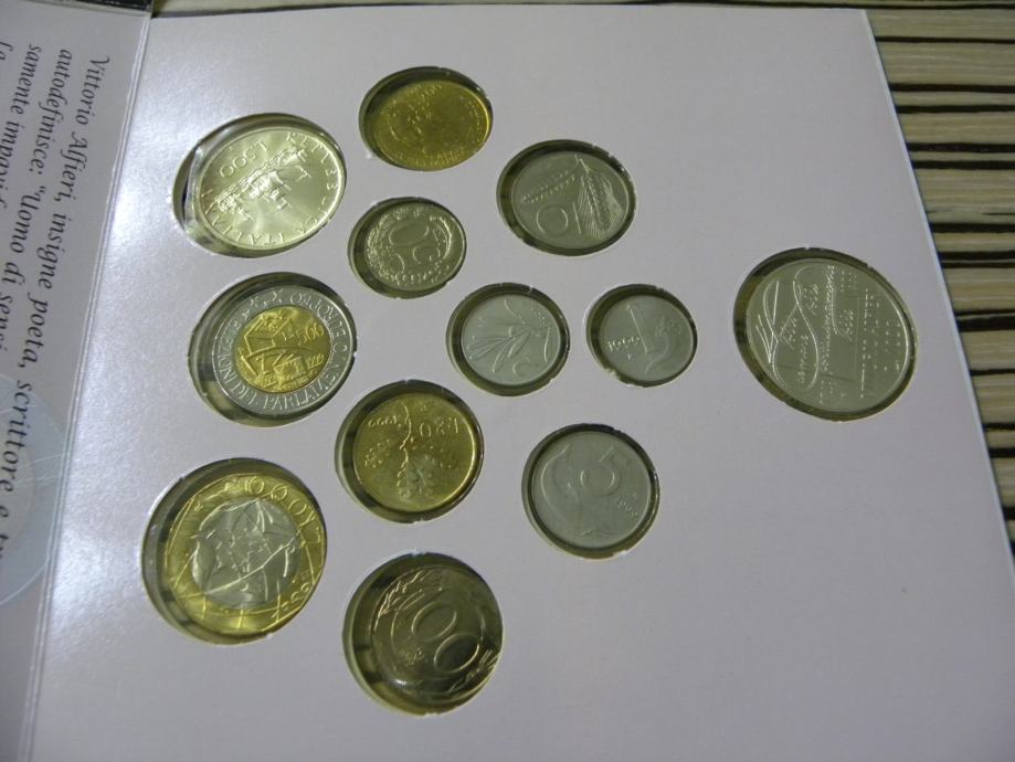 Prodajata se seta na sliki, v vsakem tudi po 2 srebrnika za 500 in 1000 lir. Cena je za kos. Letnik 1999 je prodan.