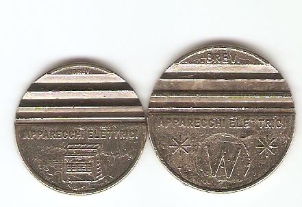 Prodam ohranjena žetona APPARECCHI ELETTRICI, vidno na slikah-cena za oba.