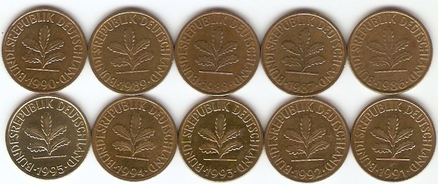 Prodam 10 kovancev D-1986,87,88,89,90,91,92,93,94,95 vidno na slikah.