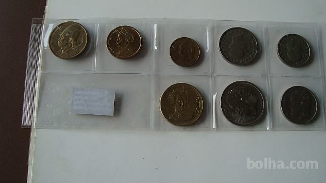 Prodam set kovancev na slikah.Menjam tudi za drugo filatelijo Slovenije, Jugoslavije,značke,dopisnice,bankovce,kovance,medalije in ostalo drobno starino.