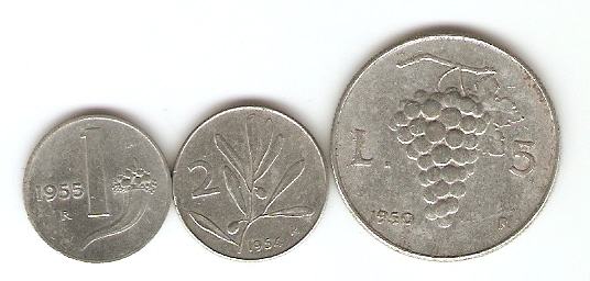 Prodam kovance 1 lira 1955, 2 liri 1954, 5 lir 1950, vidno na slikah.