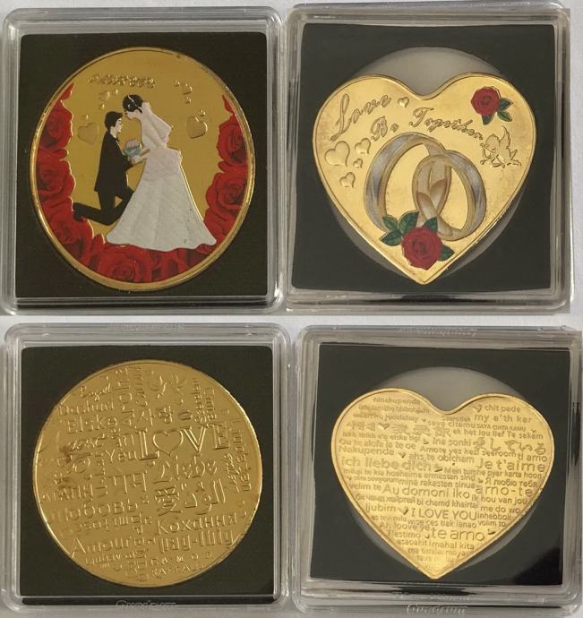 1.Poročni kovanec za ljubimce, (zlato platirani) z ljubezenskimi spisi »poročni spominko darilo..