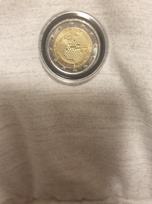 SVETOVNI DAN ČEBEL - SLOVENIJA 2018 (World Day of Bees - 20th of May). V jedru kovanca je podoba satja v obliki zemeljske oble, ki prikazuje vzhodno poloblo. Prazne celice satovja predstavljajo morje, medtem ko je kopno prikazano z zapolnjenimi celicami v satovju. Napis „SVETOVNI DAN ČEBEL“ zaobjema podobo satja na levi strani zgoraj, na desni strani spodaj pa napis „SLOVENIJA 2018“. Oblikovanje: Janez Bizjak, Bled. Kovanje: Istituto Poligrafico e Zecca dello Stato, Italija.