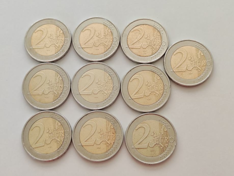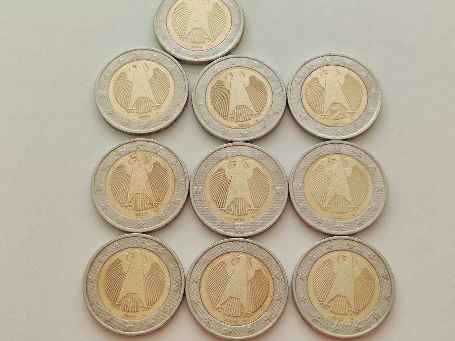 Prodam 10, trenutno najbolj iskanih kovancev za 2€ iz Nemčije, ki imajo na zadnji strani orla, letnico 2002 in črko G. Zelo dobro ohranjeni. Cena 600€/kom. Glede cene je še možen dogovor - ni zadnja. Količinski popust. Kontakt - 040 658 144.