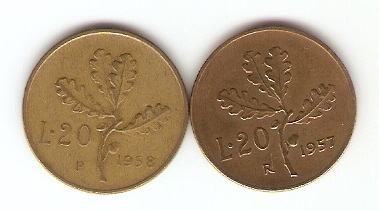 Prodam zanimiva kovanca 20 lir vidno na slikah.