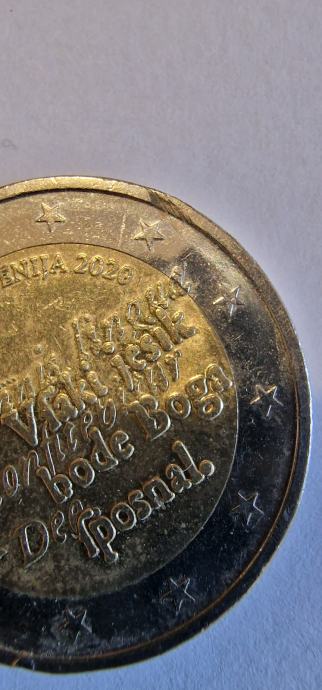 Slovenski kovanec 2020 z napako...udolbina in zareza vidne na sliki. Cene kovancev z napako dosegajo vrtogljave cene...cena kovanca 100 evrov...