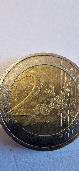 Kovanec irski 2002 z napako na stevilki spredaj in zamik notranjega kroga zadaj.