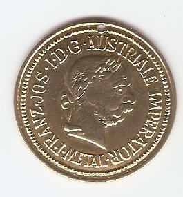 Prodam zlat - rumen žeton, FRANZ .JOS. I:D:G: AUSTRIALE IMPERATOR, vidno na slikah.