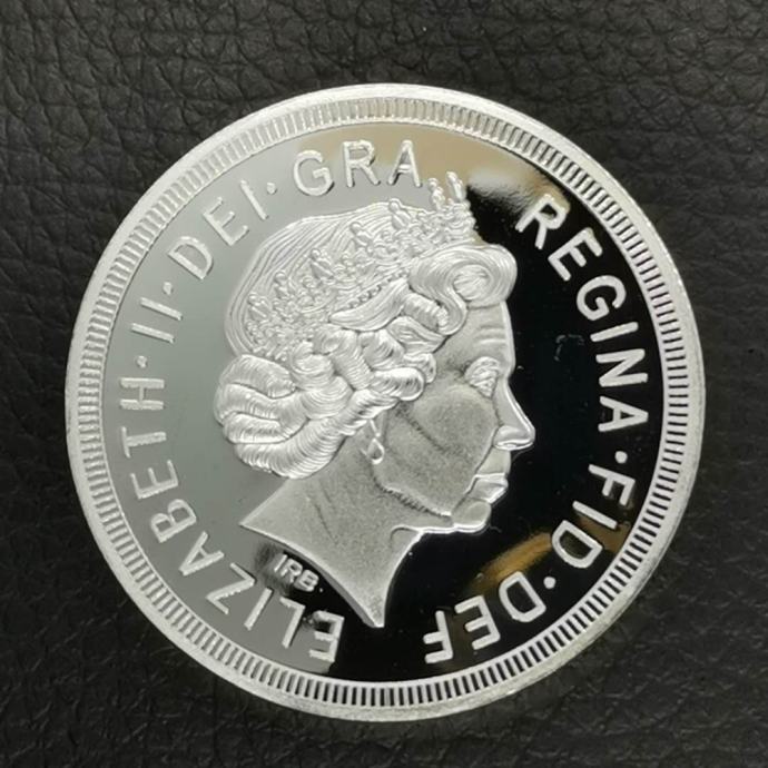 Portret kraljice Elizabete II. Spominski, zbirateljski kovanec .Srebrena prevleka kovanca..