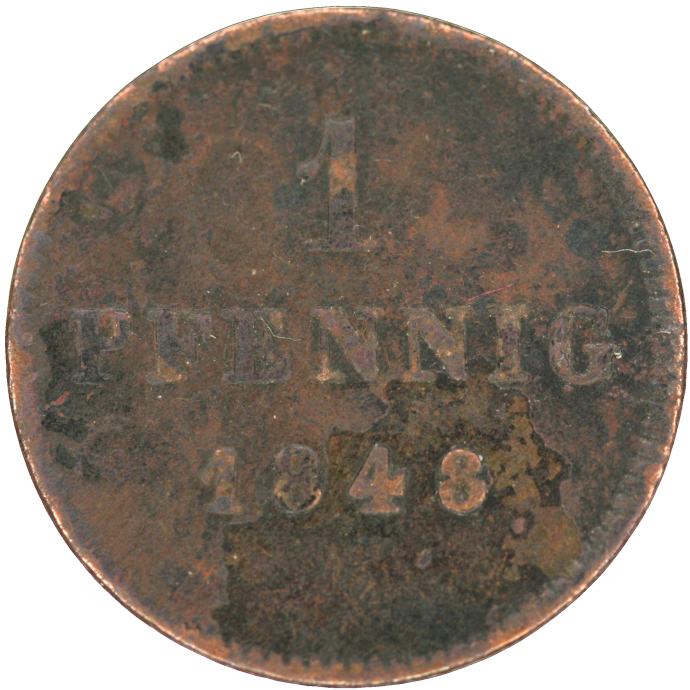 LaZooRo: Nemčija BAVARSKA 1 Pfennig 1848 F / VF