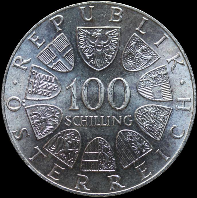 LaZooRo: Avstrija 100 Schilling 1974 UNC Zimske Innsbruck - Srebro