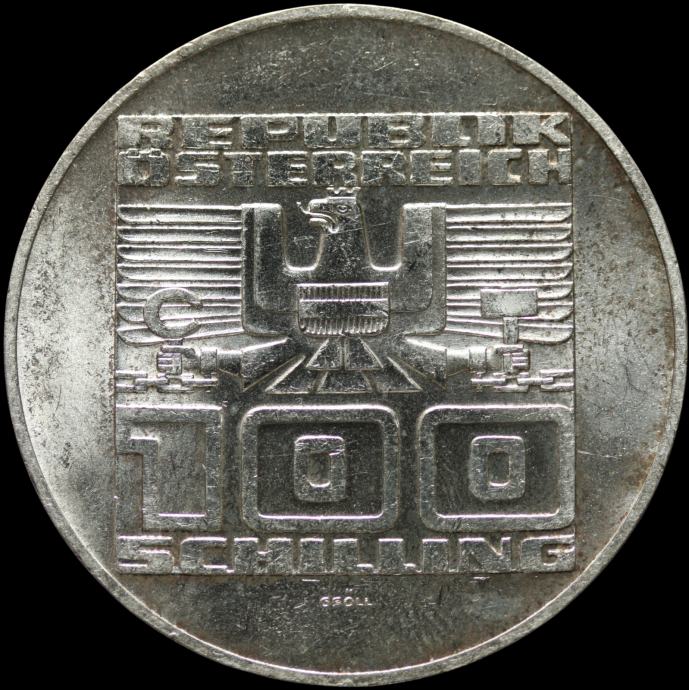 LaZooRo: Avstrija 100 Schilling 1975 UNC državna pogodba - srebro