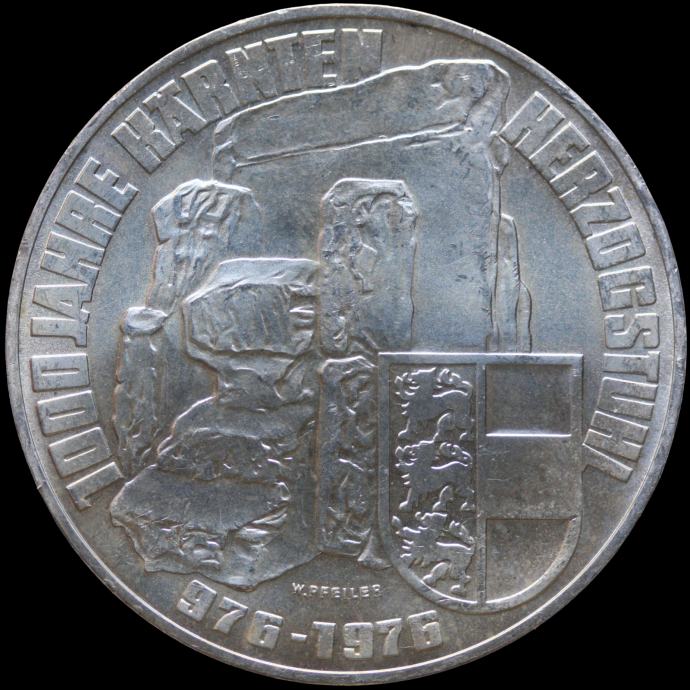 LaZooRo: Avstrija 100 Schilling 1976 UNC 1000. obletnica - Koroška - Vojvodski prestol - Srebro