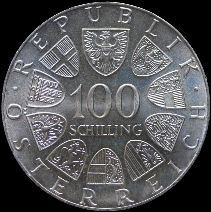 LaZooRo: Avstrija 100 Schilling 1977 UNC 1200. obletnica - Samostan Kremsmünster - Srebro