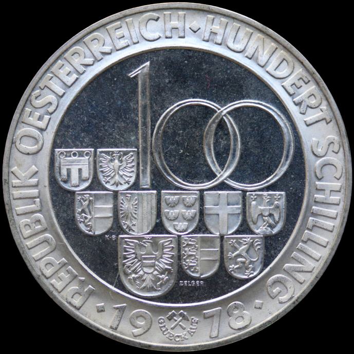 LaZooRo: Avstrija 100 Schilling 1978 PROOF Odprtje Arlberškega predora - Srebro