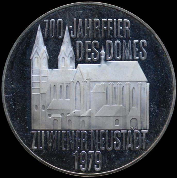 LaZooRo: Avstrija 100 Schilling 1979 PROOF 700. obletnica - Katedrala v Dunajskem Novem mestu - Srebro