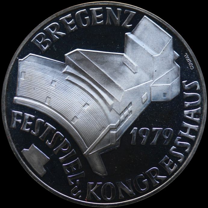 LaZooRo: Avstrija 100 Schilling 1979 PROOF Festivalna in kongresna dvorana v Bregenzu - Srebro