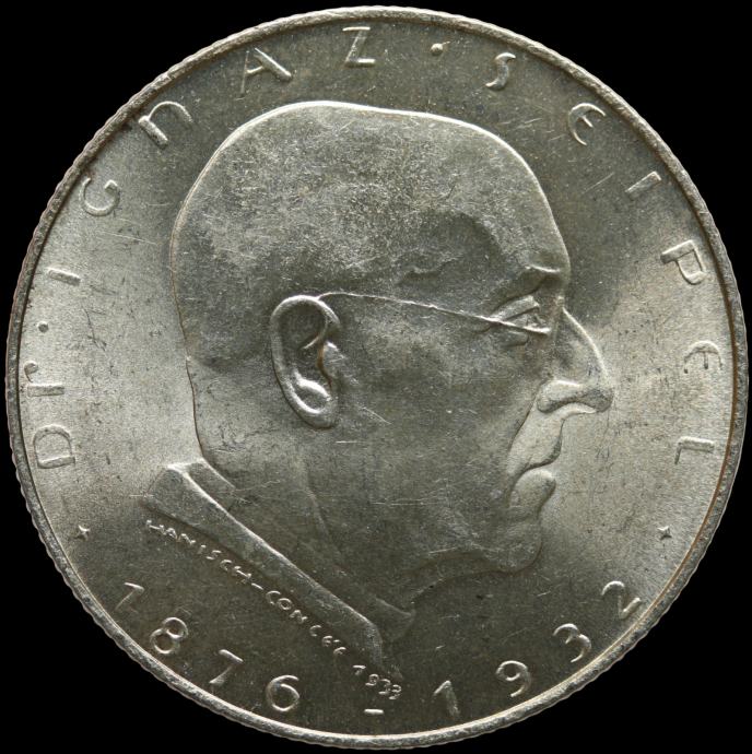 LaZooRo: Avstrija 2 Schilling 1933 UNC Smrt dr. Ignaza Seipla, kanclerja - Srebro