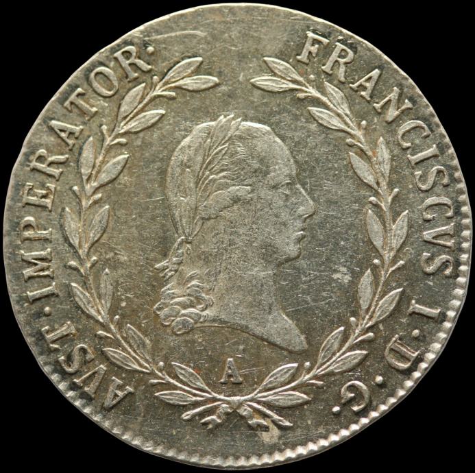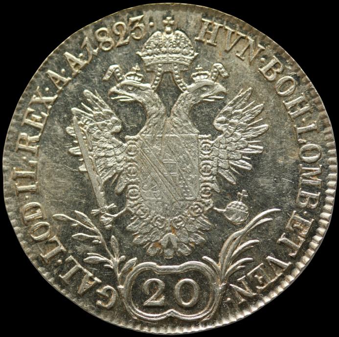 LaZooRo: Avstrija 20 Kreuzer 1823 A PROOF zelo redek - Srebro