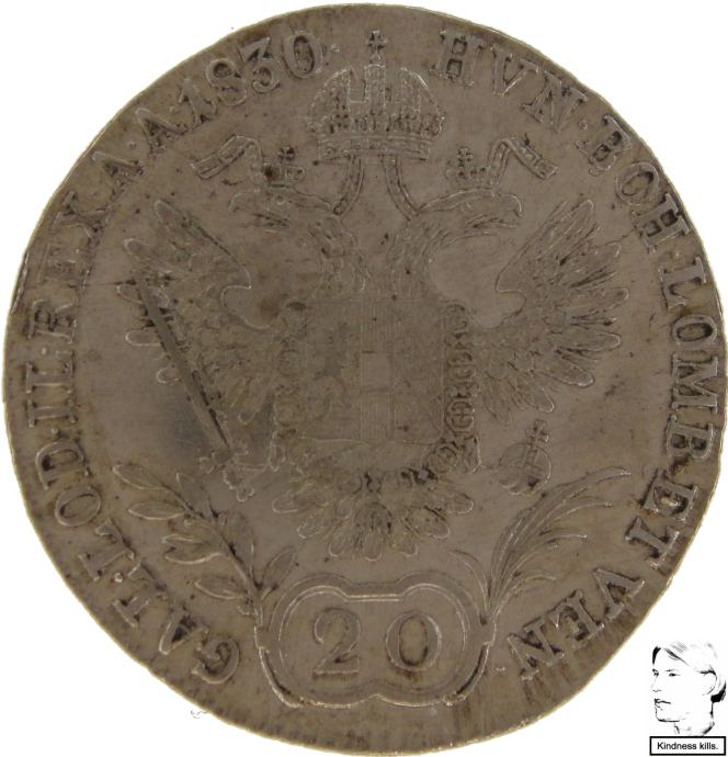 LaZooRo: Avstrija 20 Kreuzer 1830 C UNC - srebro
