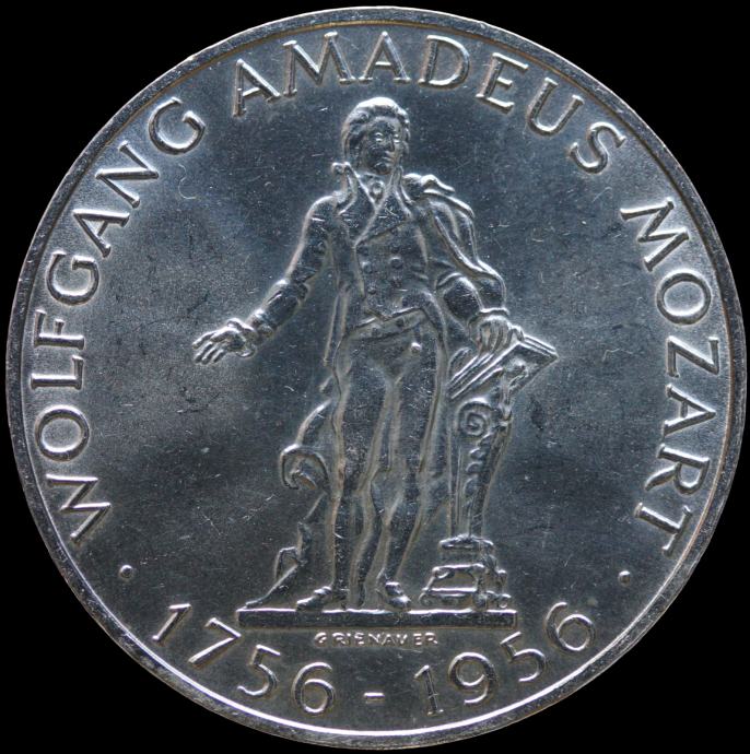 LaZooRo: Avstrija 25 Schilling 1956 XF / UNC 200. obletnica - Rojstvo Wolfganga Mozarta - Srebro
