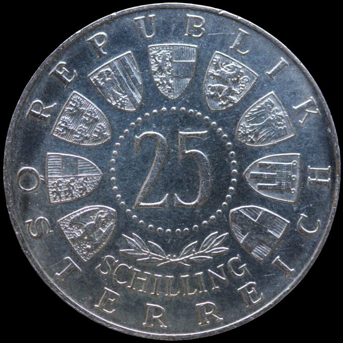 LaZooRo: Avstrija 25 Schilling 1958 XF 100 - Auer Welsbach - Srebro