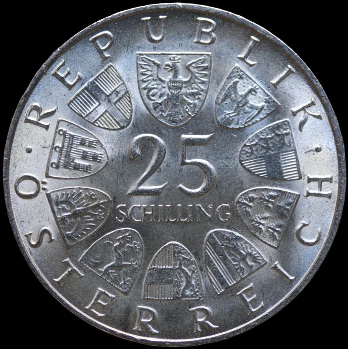 LaZooRo: Avstrija 25 Schilling 1967 XF / UNC 250. M. Tereza - Srebro