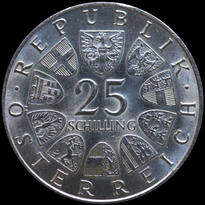 LaZooRo: Avstrija 25 Schilling 1968 XF / UNC Von Hildebrandt - Srebro