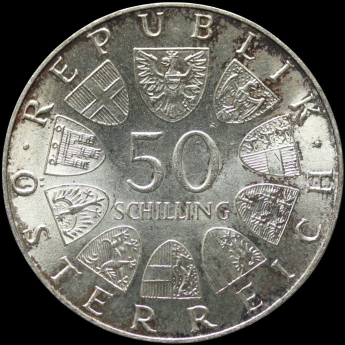 LaZooRo: Avstrija 50 Schilling 1973 UNC Bummerl House - srebro