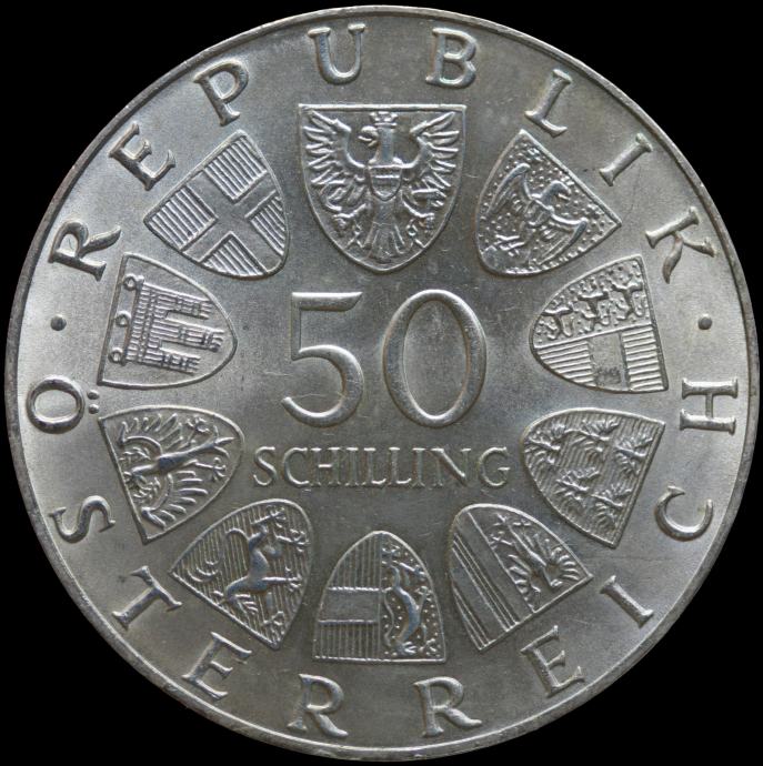 LaZooRo: Avstrija 50 Schilling 1974 UNC Mednarodna razstava - Srebro
