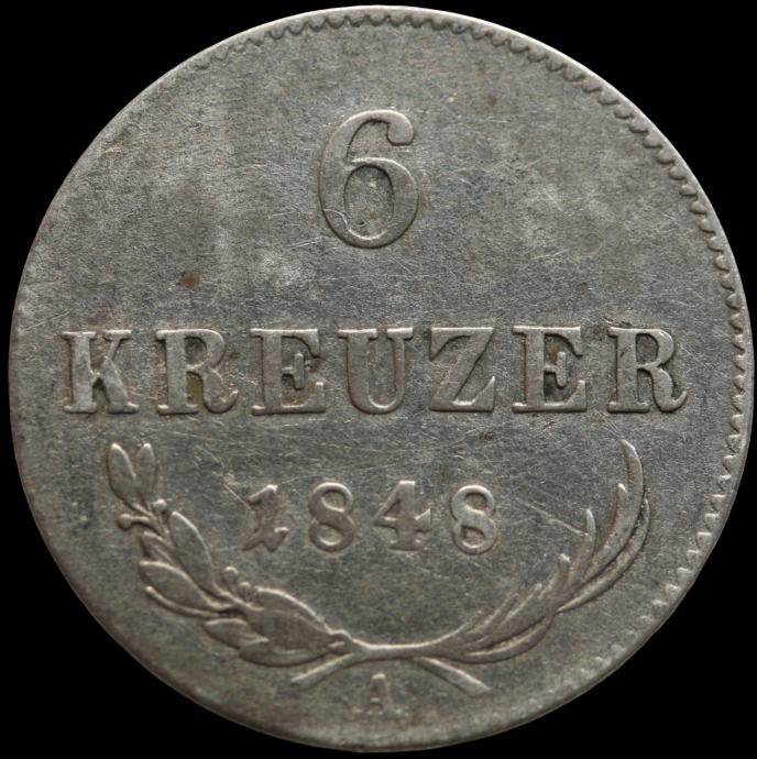 LaZooRo: Avstrija 6 Kreuzer 1848 A VF / XF - srebro