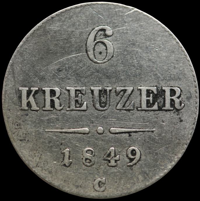 LaZooRo: Avstrija 6 Kreuzer 1849 C VF - srebro