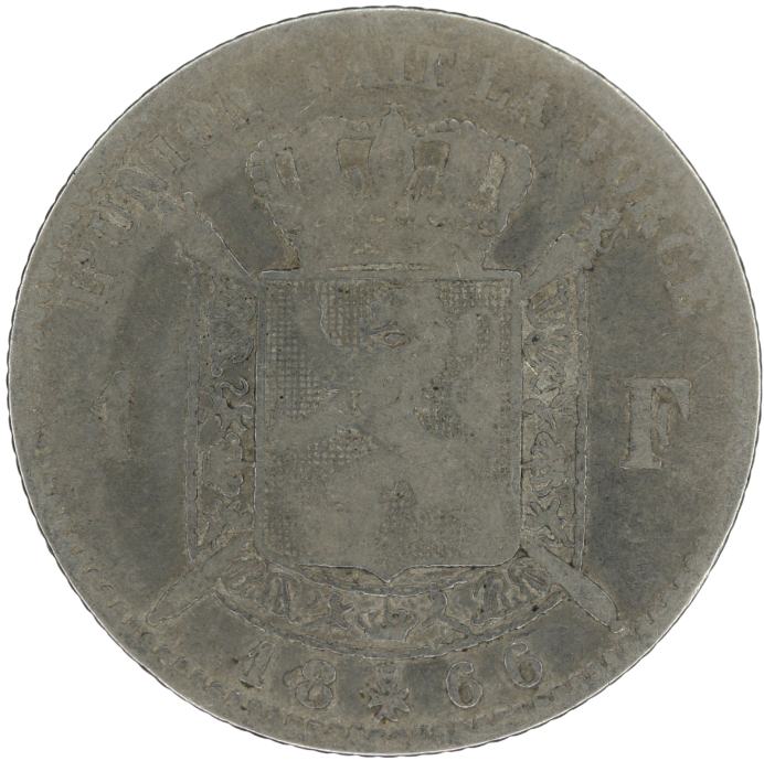 LaZooRo: Belgija 1 Franc 1866 F - srebro