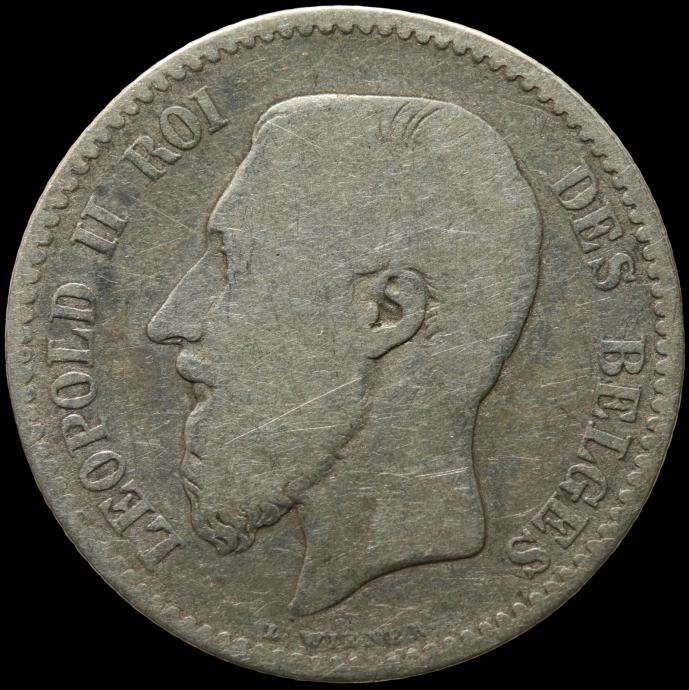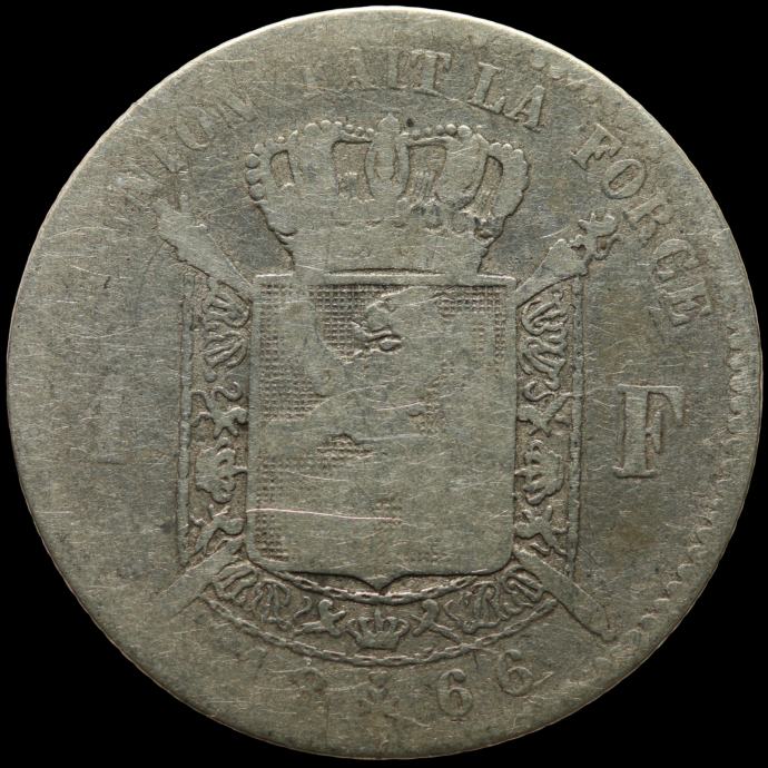 LaZooRo: Belgija 1 Franc 1866 F - srebro