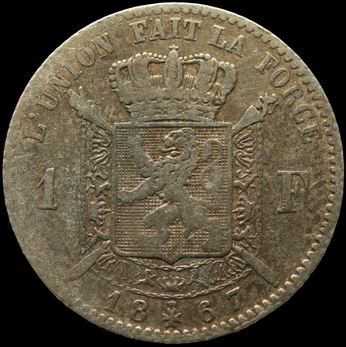 LaZooRo: Belgija 1 Franc 1867 VF/ XF - srebro