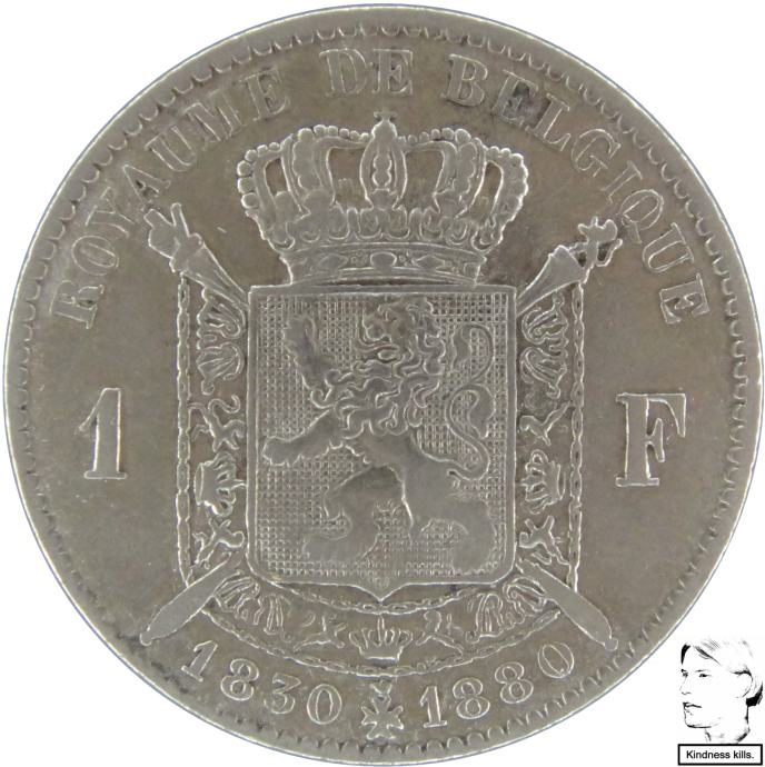 LaZooRo: Belgija 1 Franc 1880 XF - srebro