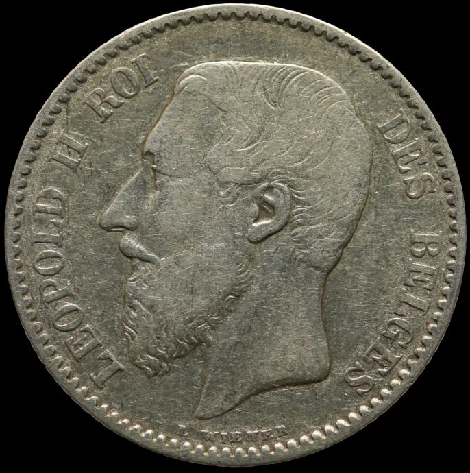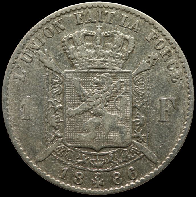 LaZooRo: Belgija 1 Franc 1886/66 VF / XF - srebro