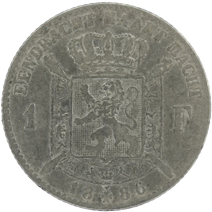 LaZooRo: Belgija 1 Franc 1886 VF - srebro