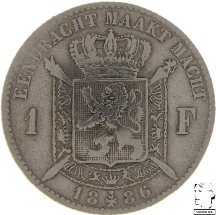 LaZooRo: Belgija 1 Franc 1886 VF / XF - srebro