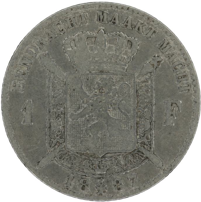 LaZooRo: Belgija 1 Franc 1887 VF / XF - srebro