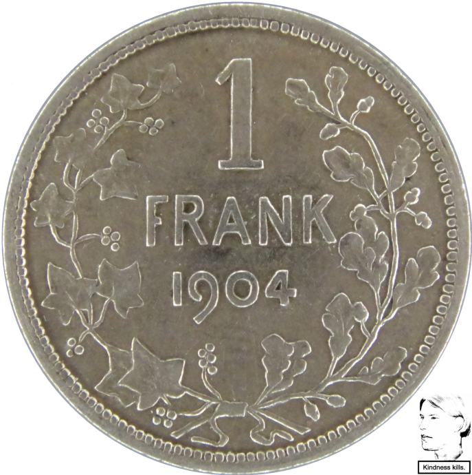 LaZooRo: Belgija 1 Franc 1904 XF - srebro