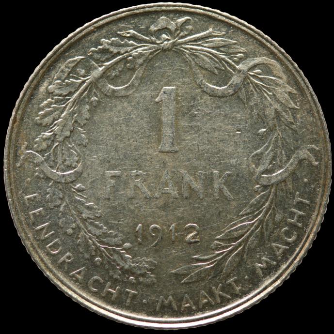 LaZooRo: Belgija 1 Franc 1912 XF - srebro