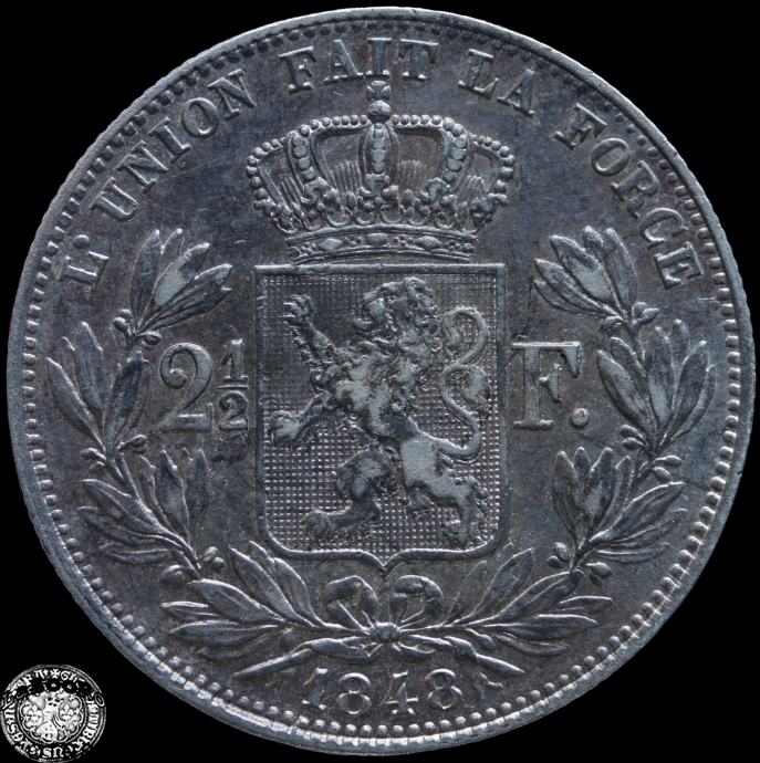 LaZooRo: Belgija 2 1/2 Francs 1848 XF / UNC redkejši - srebro