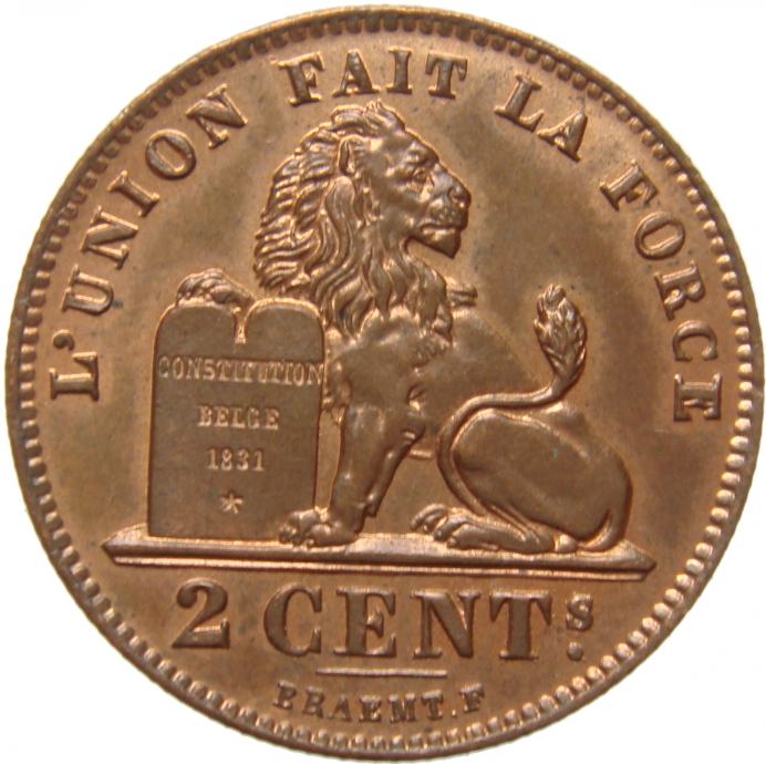 LaZooRo: Belgija 2 Centimes 1909 UNC