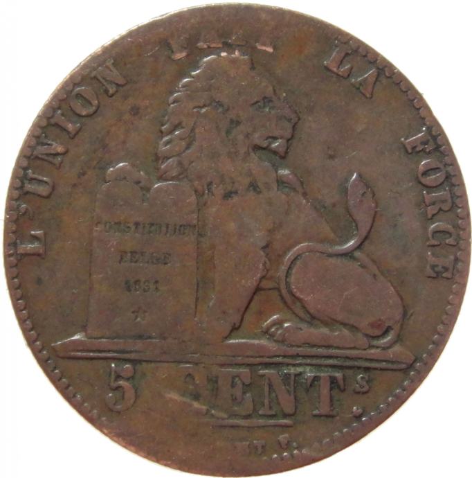 LaZooRo: Belgija 5 Centimes 1848 VF