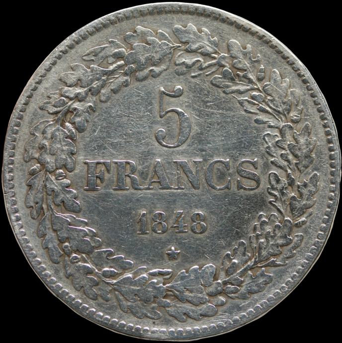 LaZooRo: Belgija 5 Francs 1848 VF / XF - Srebro