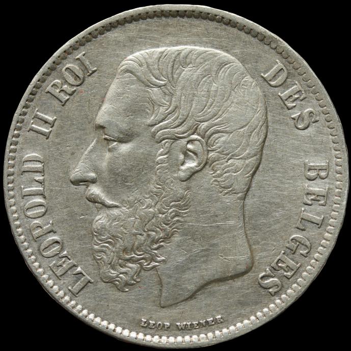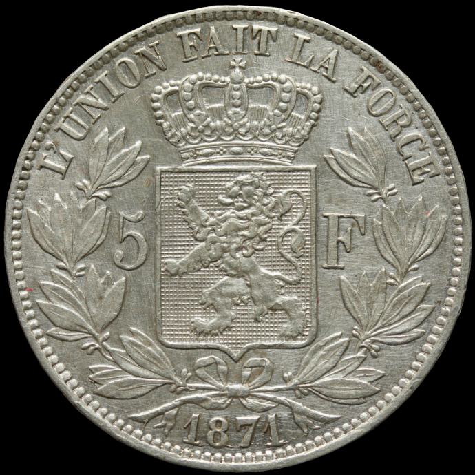 LaZooRo: Belgija 5 Francs 1871 XF / UNC - srebro