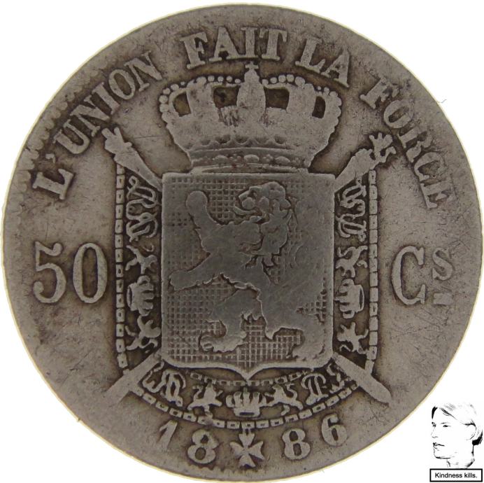 LaZooRo: Belgija 50 Centimes 1886 VF - srebro