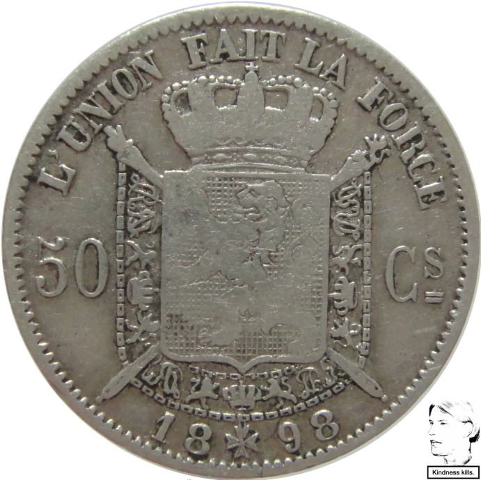 LaZooRo: Belgija 50 Centimes 1898 VF - Srebro