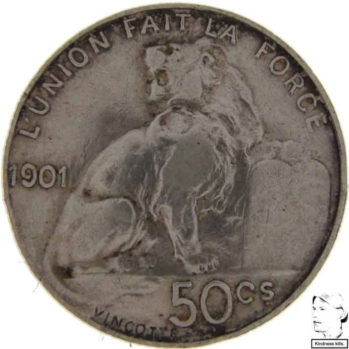 LaZooRo: Belgija 50 Centimes 1901 VF / XF - srebro